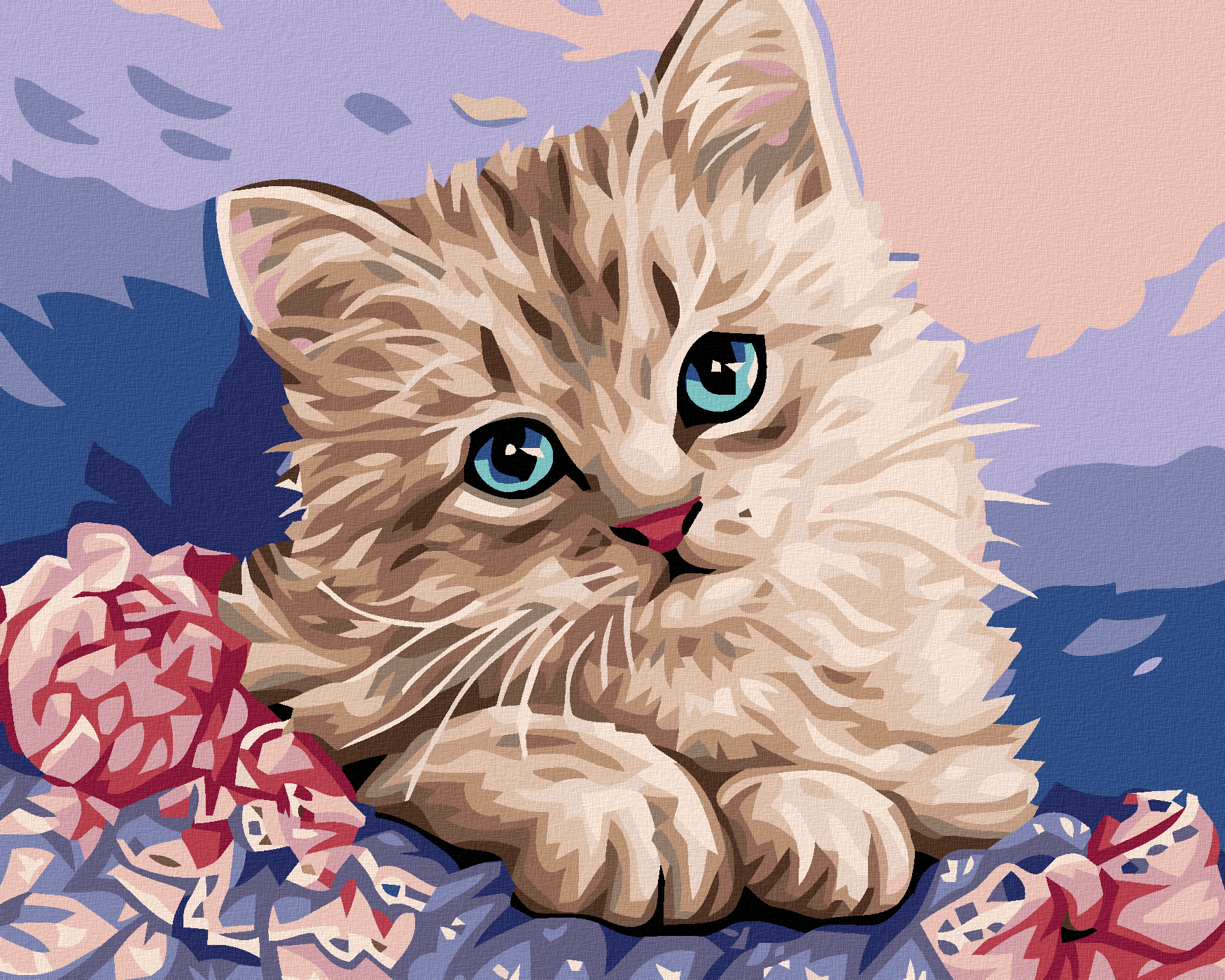 диамантени гоблени - КОТЕ И РОЗОВИ ЦВЕТЯ