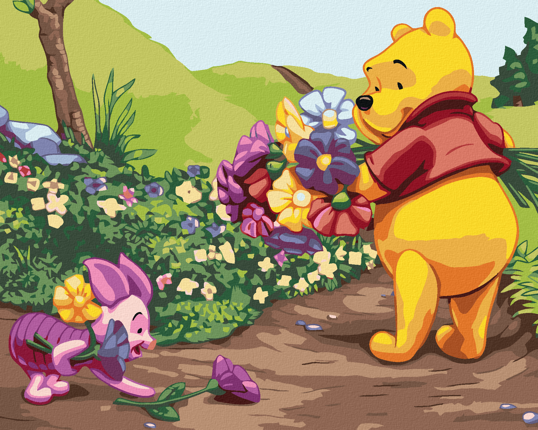 диамантени гоблени - МЕЧО ПУХ И ПРАСЕНЦЕТО С ЦВЕТЯ