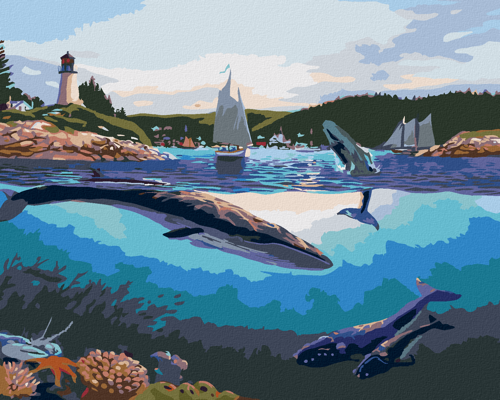 Рисуване по номера - КИТОВЕ И КРАЙБРЕЖЕН ГРАД (РОБЪРТ ДЖОНСЪН)
