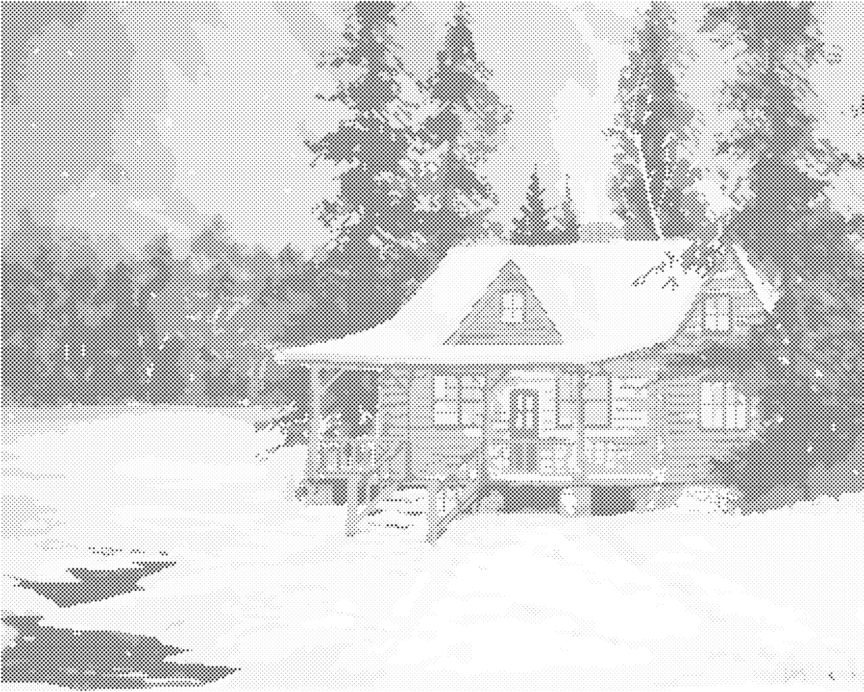 Рисуване по точки - ДЪРВЕНА КЪЩА В ЗИМНА ГОРА