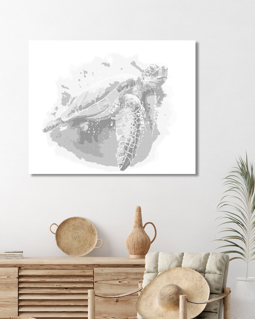 Рисуване по точки - ГОЛЯМА МОРСКА КОСТЕНУРКА НА СИН ФОН