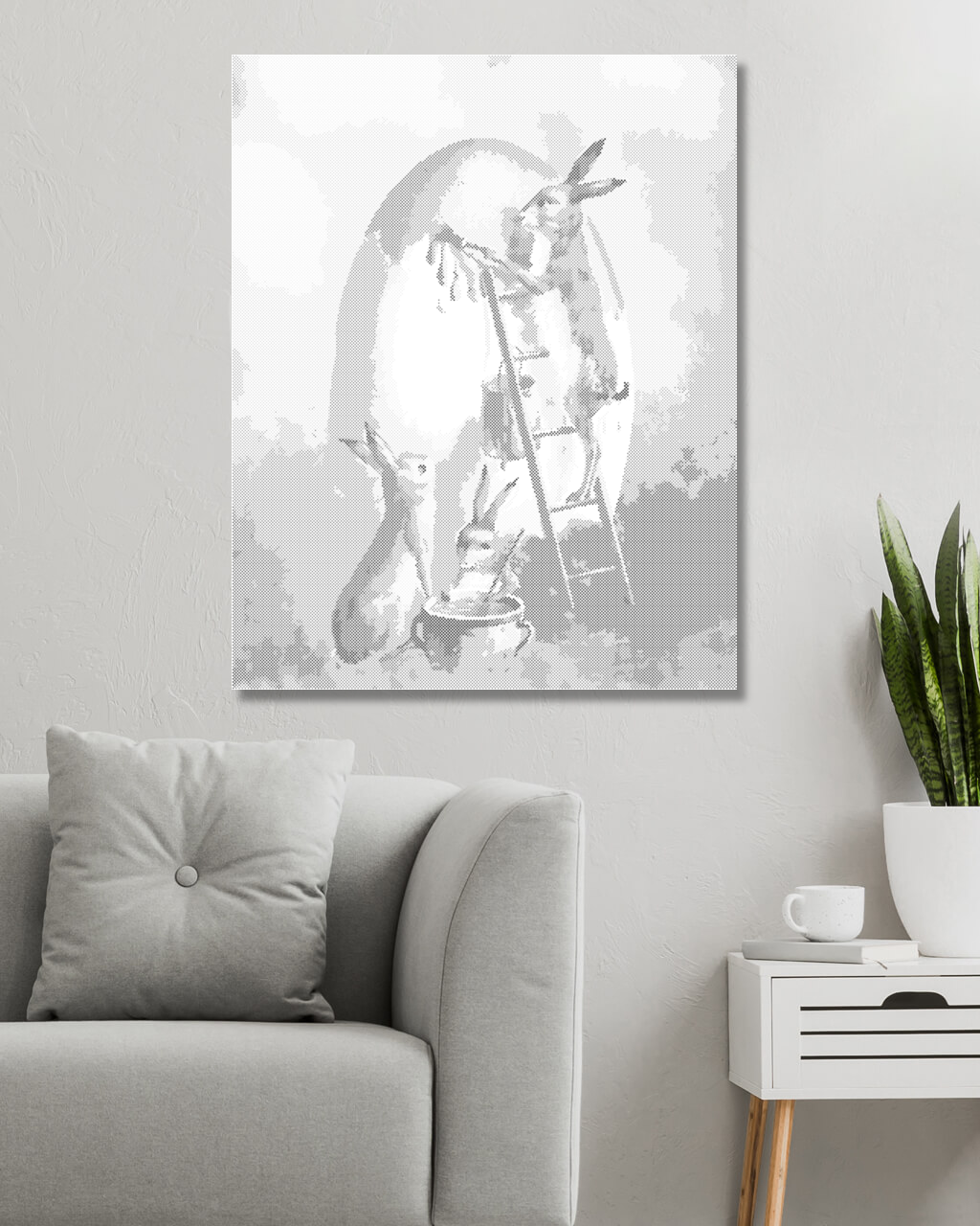 Рисуване по точки - ЗАЙЦИ БОЯДИСВАТ ЯЙЦА