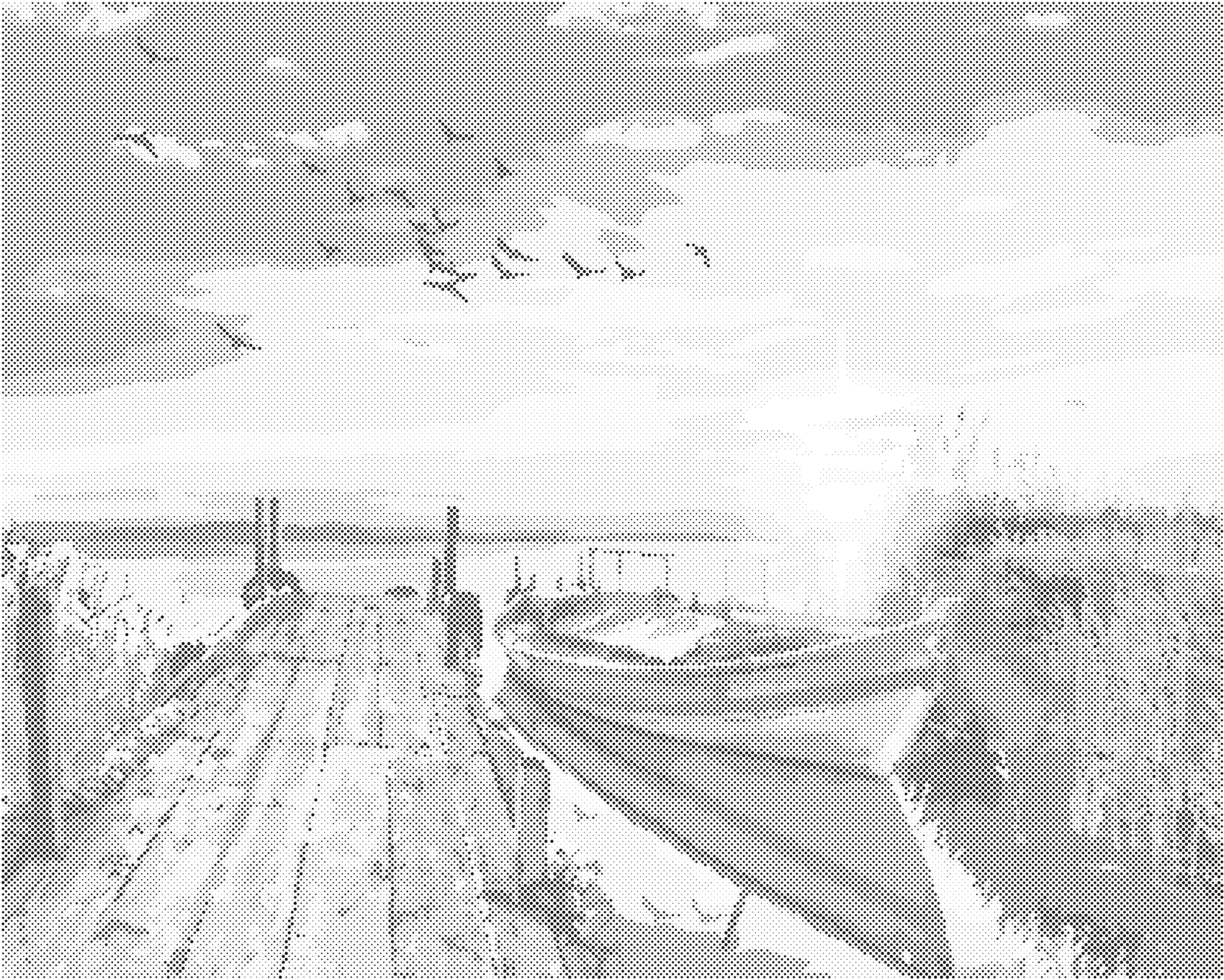 Рисуване по точки - ЗАЛЕЗ НАД ЕЗЕРО С ЛОДКА