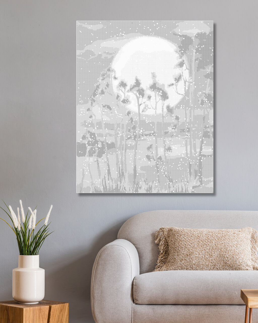 Рисуване по точки - ЛУНАТА ЗАД ДЪРВЕТАТА В ГОРАТА
