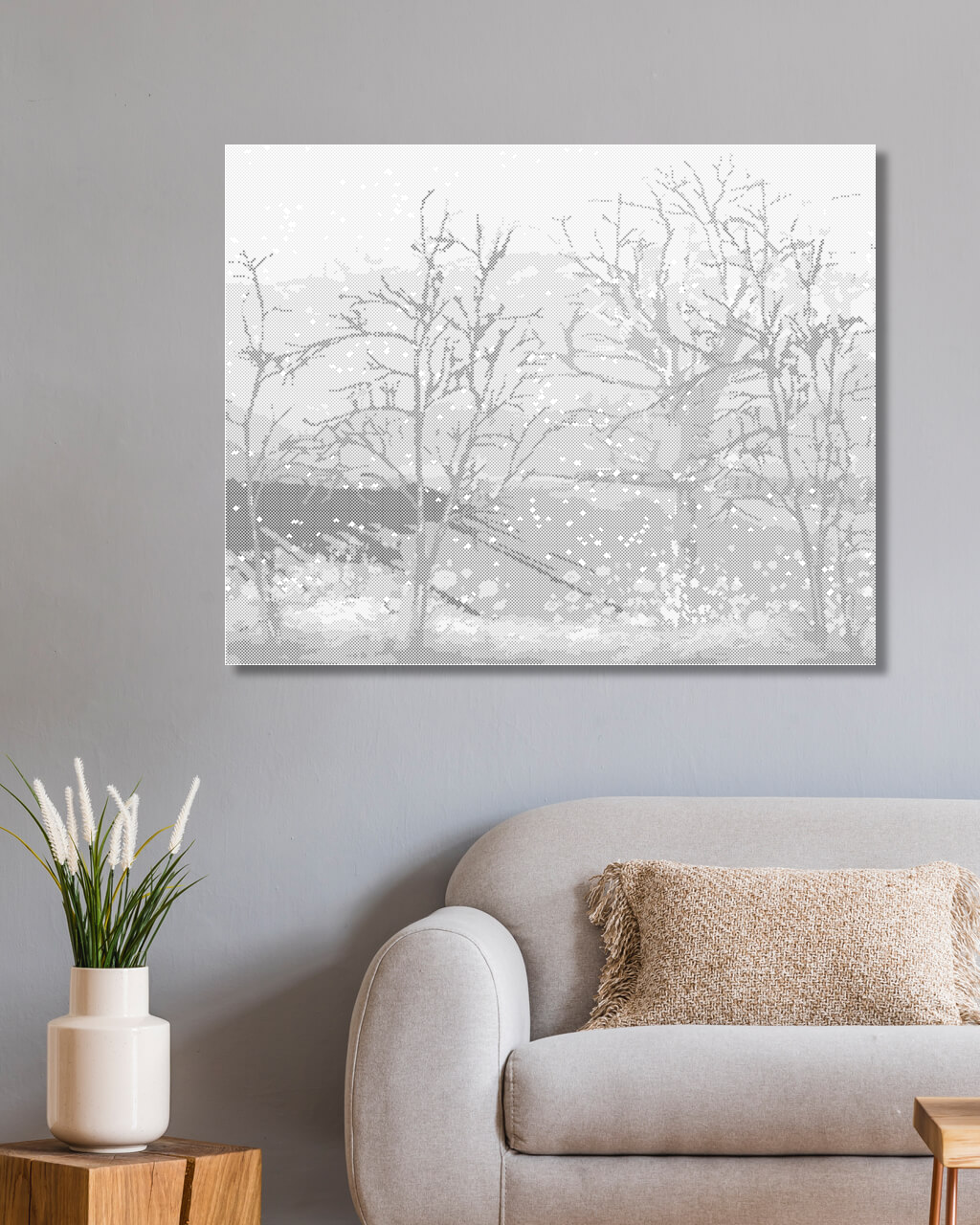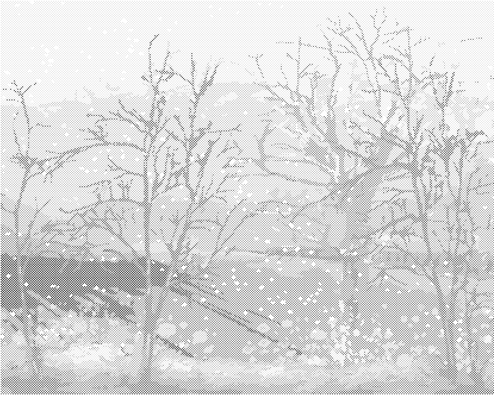 Рисуване по точки - СУТРЕШЕН СНЕГОВАЛЕЖ ВЪРХУ ДЪРВЕТАТА В ГОРАТА