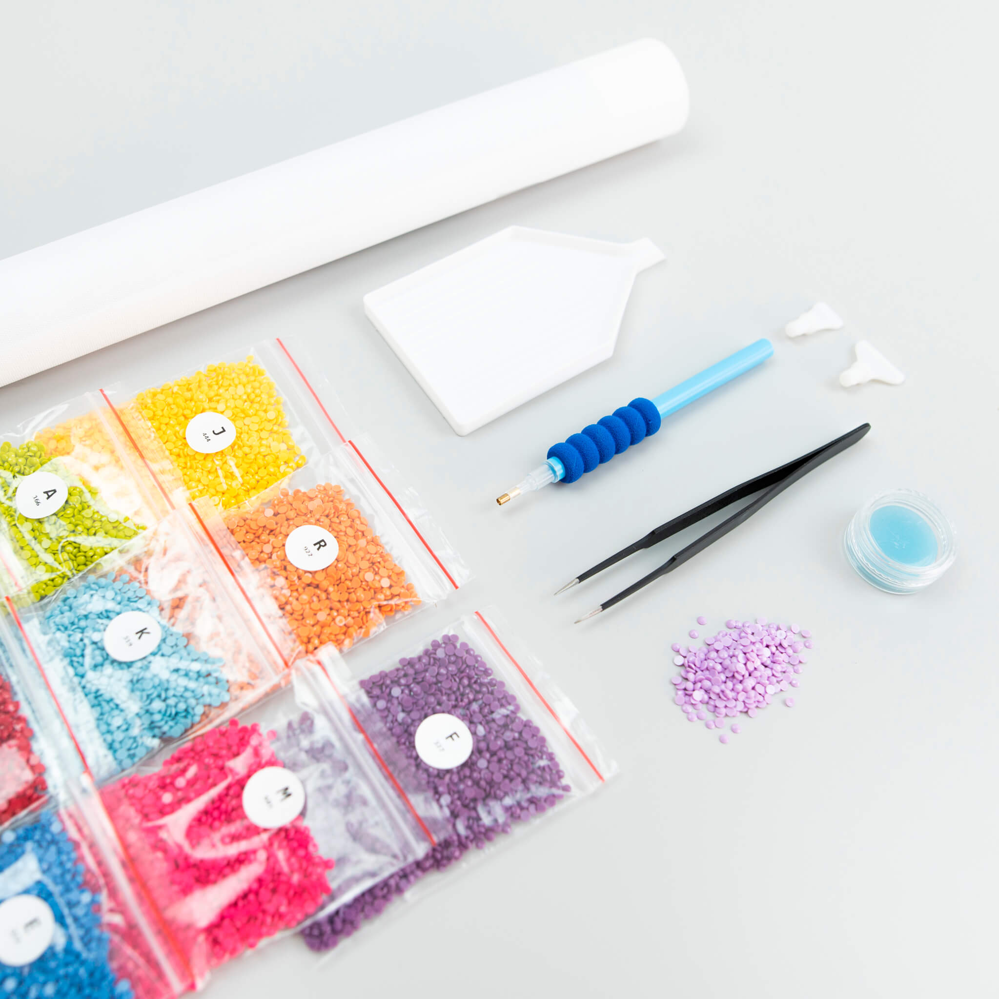 Всичко е внимателно опаковано и надписано, за да можете да започнете шедьовъра си веднага след като отворите кутията. Нашите комплекти имат предварително принтирано платно за рисуване с ясно очертани големи символи, които не натоварват очите, когато създавате картината.