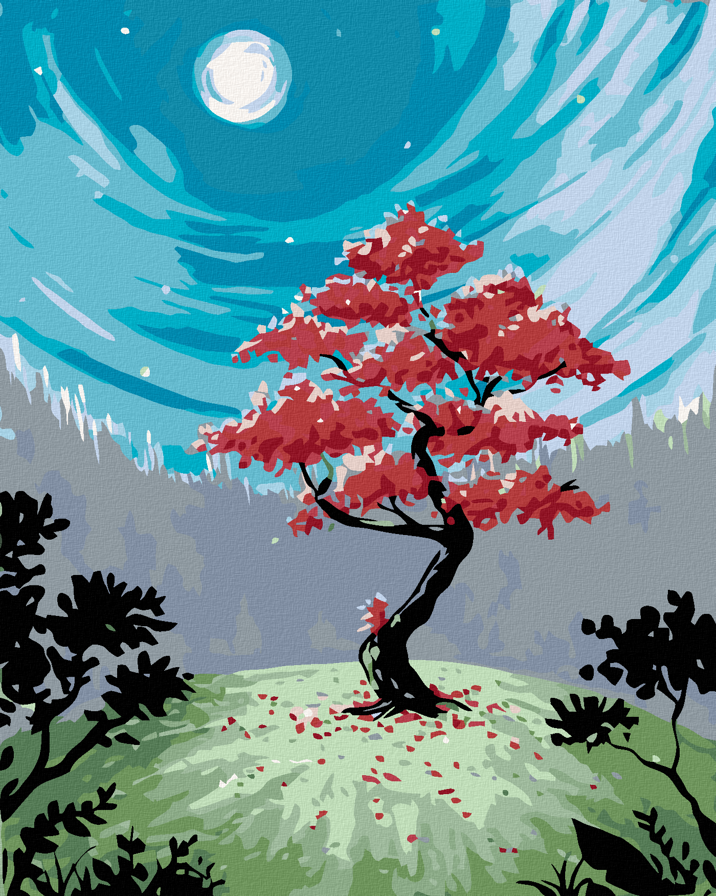 диамантени гоблени - ДЪРВО ПРИ ПЪЛНОЛУНИЕ