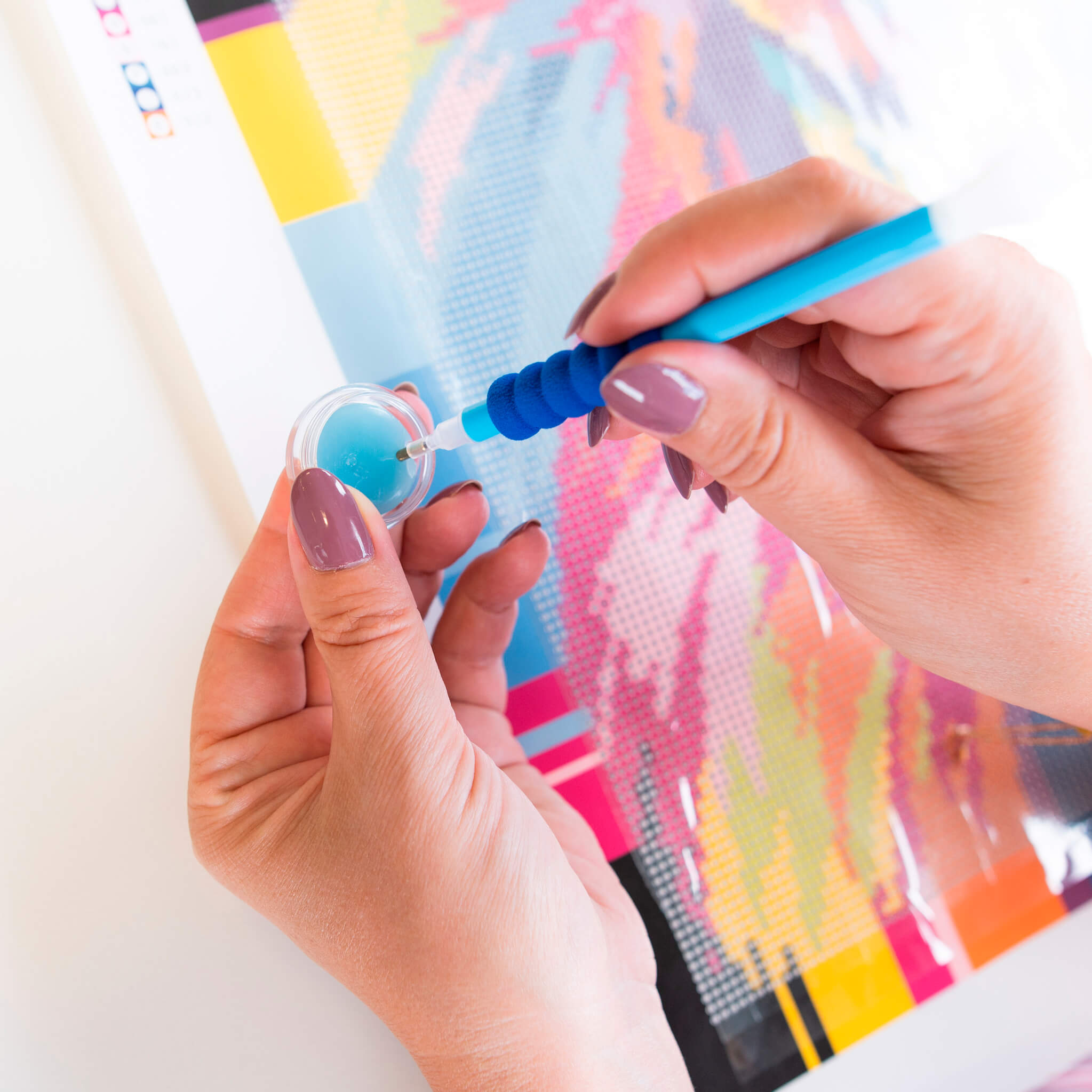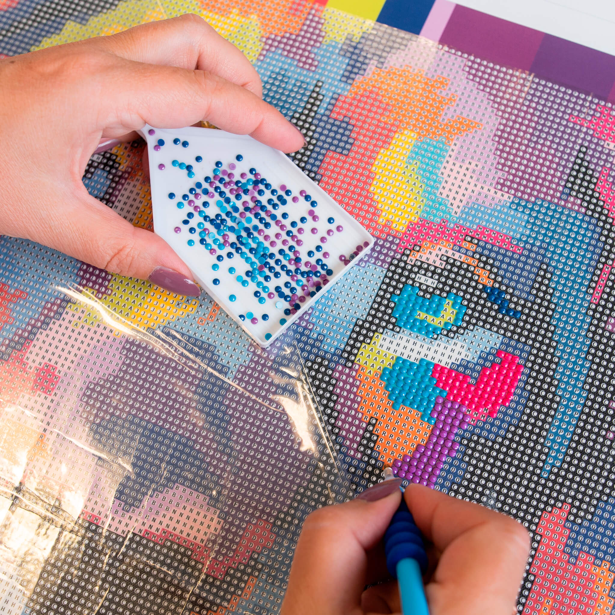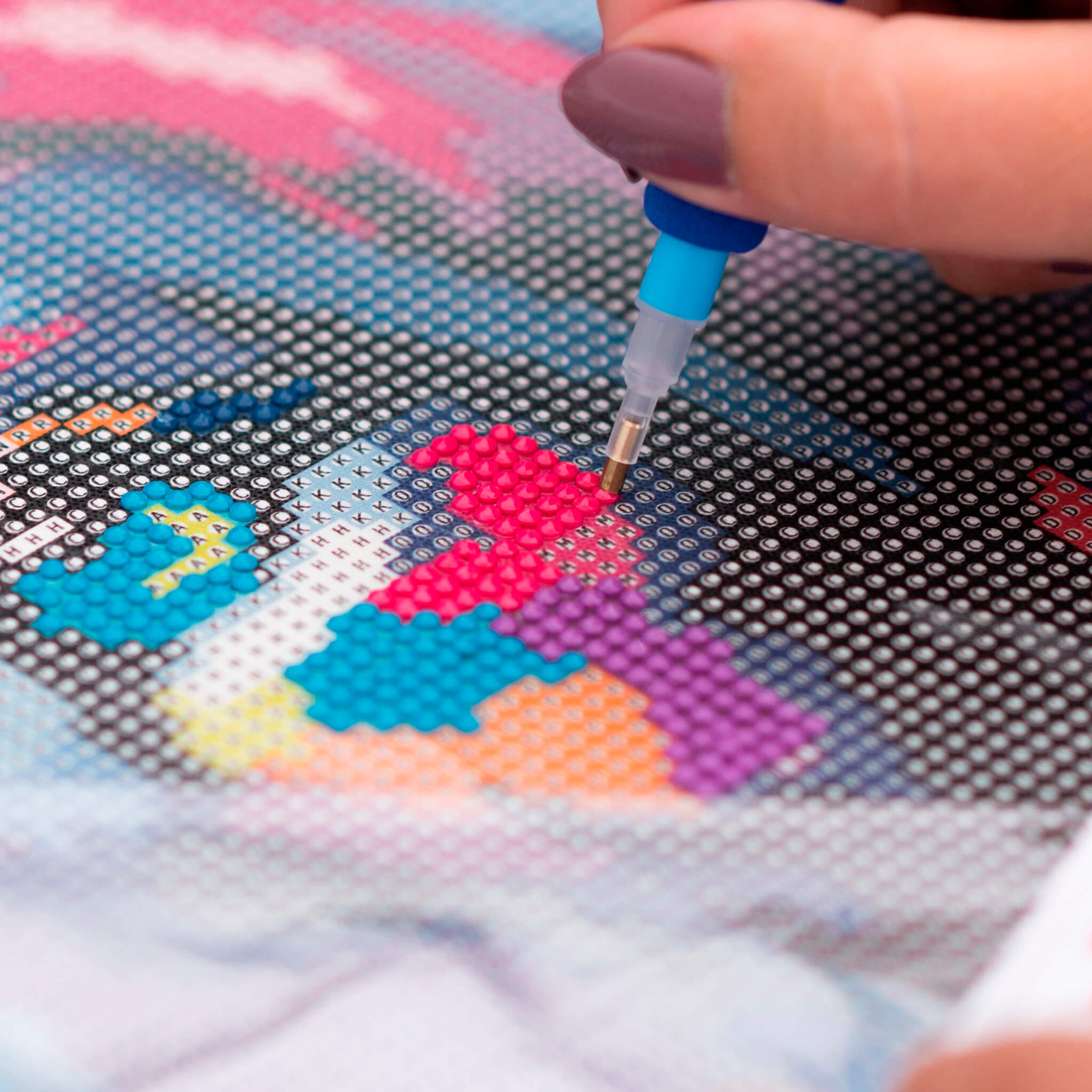Всичко е внимателно опаковано и надписано, за да можете да започнете шедьовъра си веднага след като отворите кутията. Нашите комплекти имат предварително принтирано платно за рисуване с ясно очертани големи символи, които не натоварват очите, когато създавате картината.