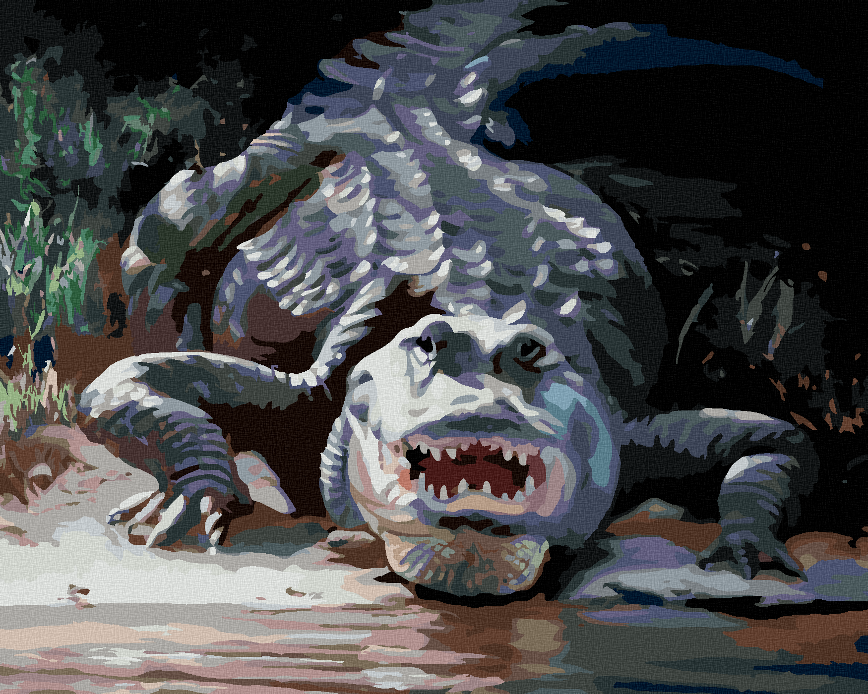 Рисуване по номера - АЛИГАТОР С ОТВОРЕНА УСТА ВЪВ ВОДАТА (Д. РЪСТИ РЪСТ)
