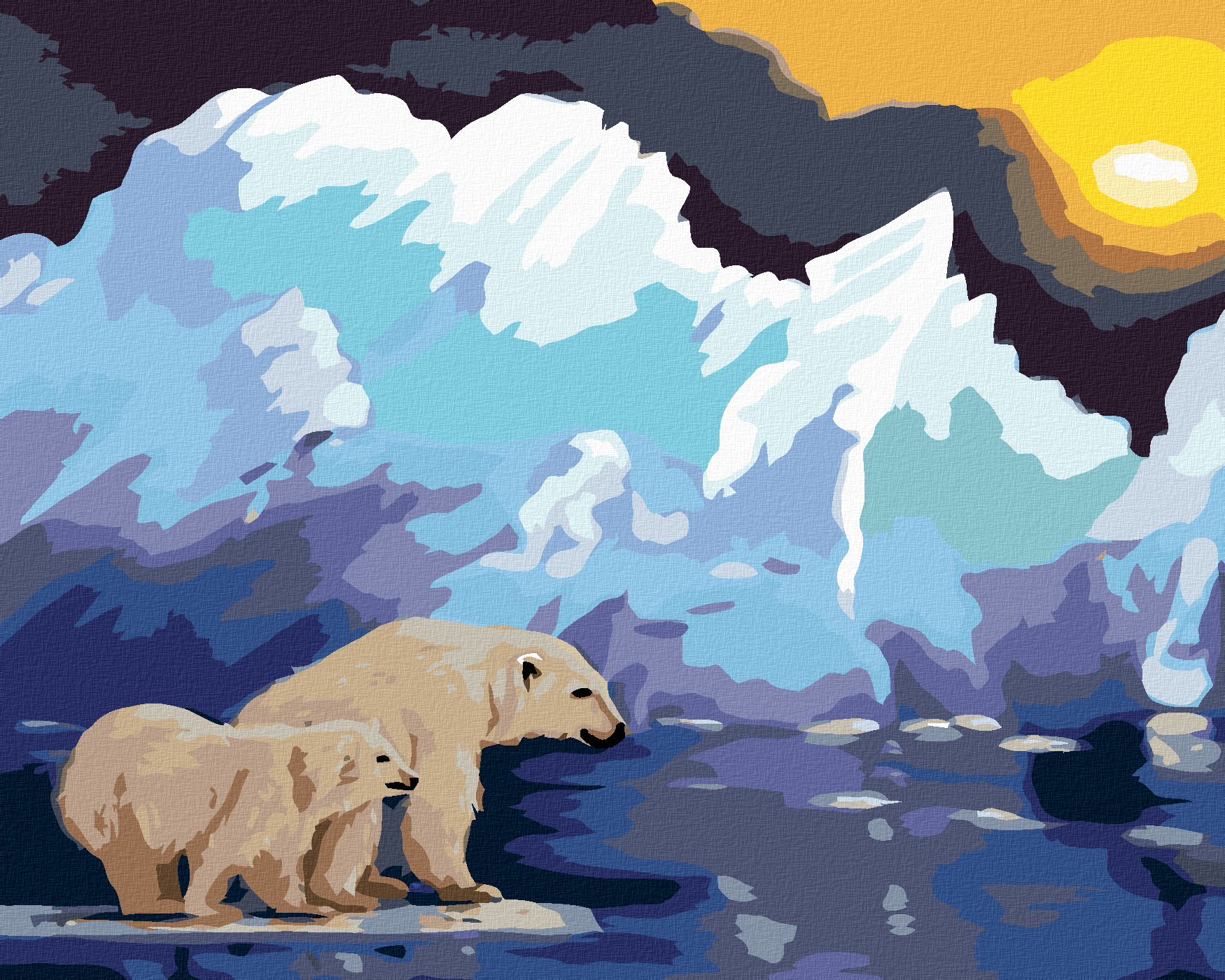 Рисуване по номера - БЯЛА МЕЧКА ВЪРХУ ЛЕДА И ЛЕДНИКА (Д. РЪСТИ РЪСТ)