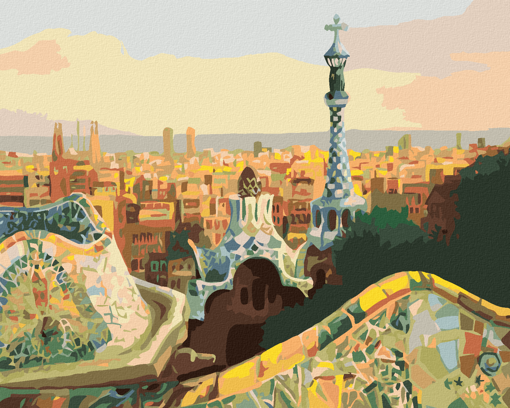 Рисуване по номера - ГЛЕДКА КЪМ БАРСЕЛОНА ОТ ПАРК ГЮЕЛ