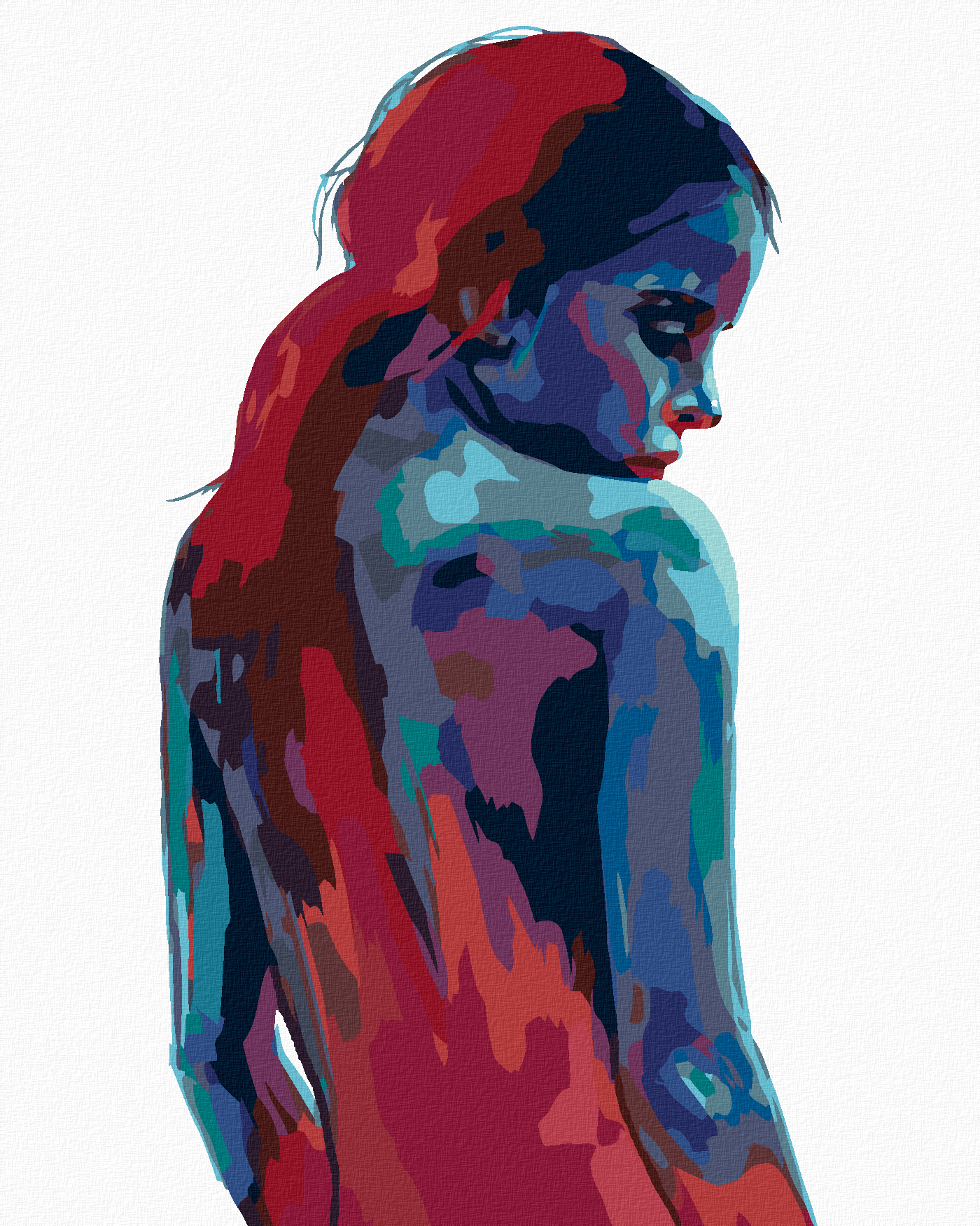 Рисуване по номера - ЖЕНА В НЮАНСИ НА СИНЬО И ЧЕРВЕНО