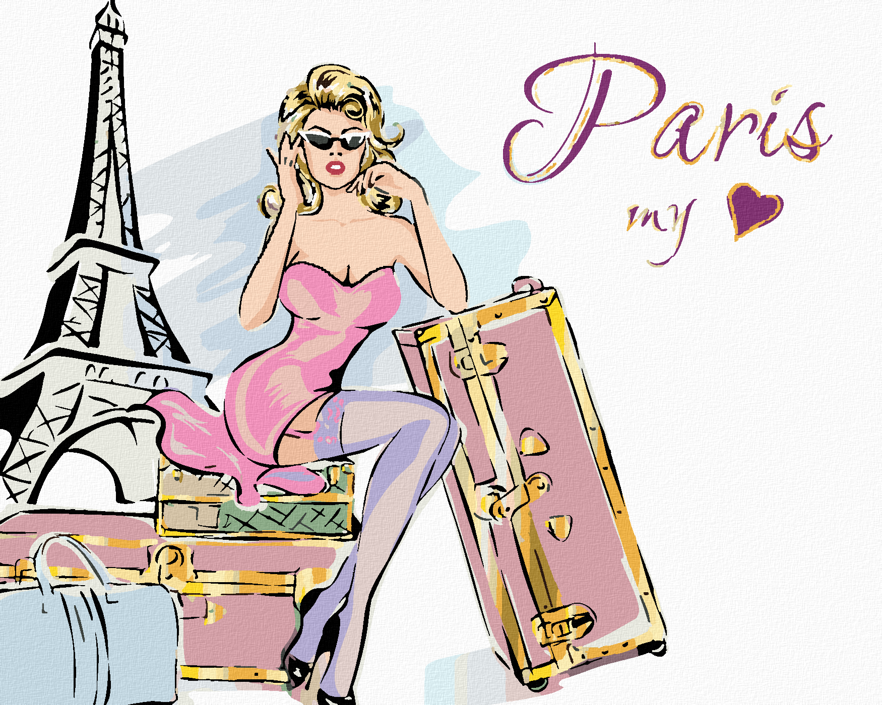 Рисуване по номера - ЖЕНА С КУФАРИ НА АЙФЕЛОВАТА КУЛА