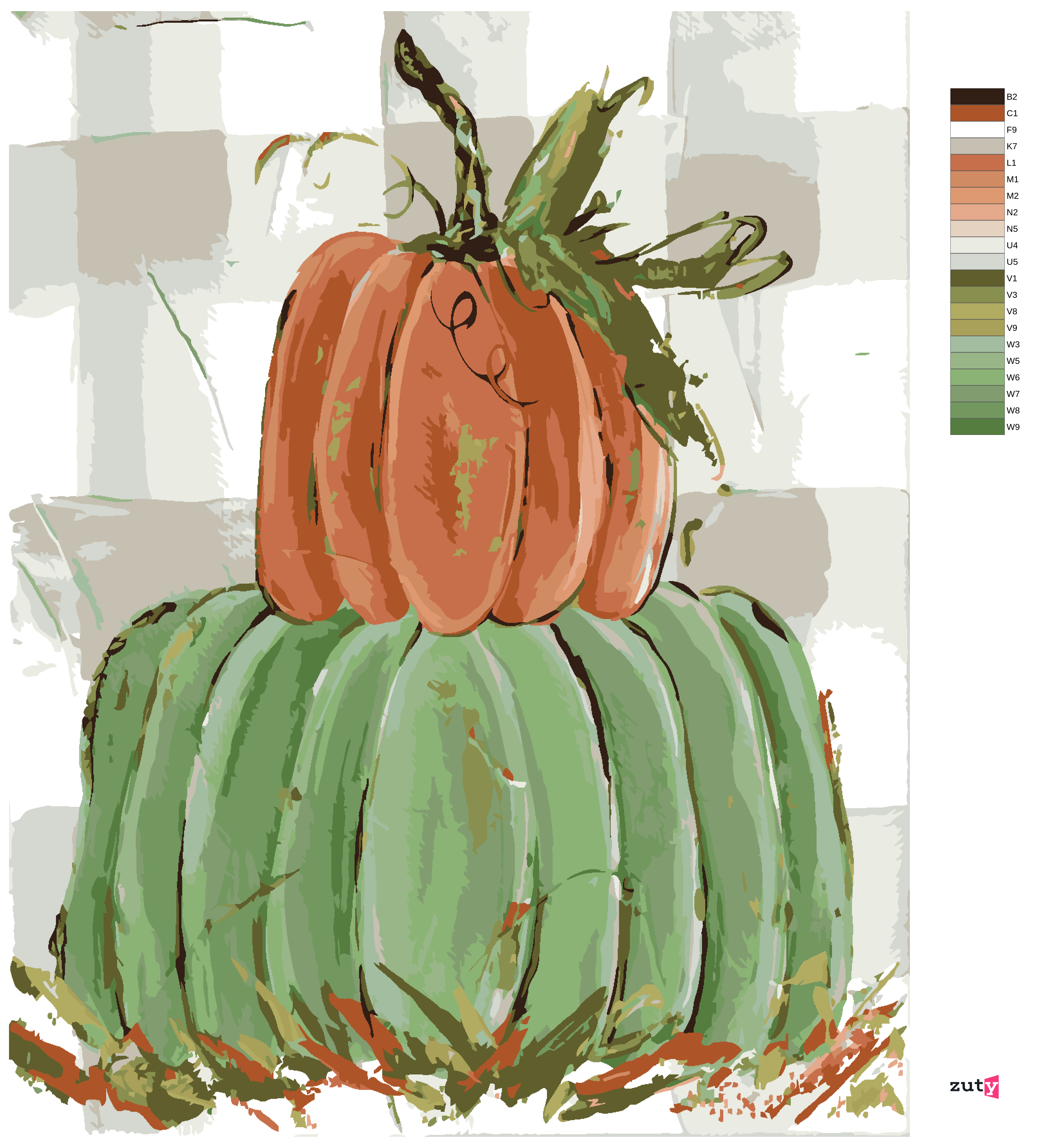 Рисуване по номера - ЗЕЛЕНА И ОРАНЖЕВА ТИКВА (ХЕЙЛИ БУШ)