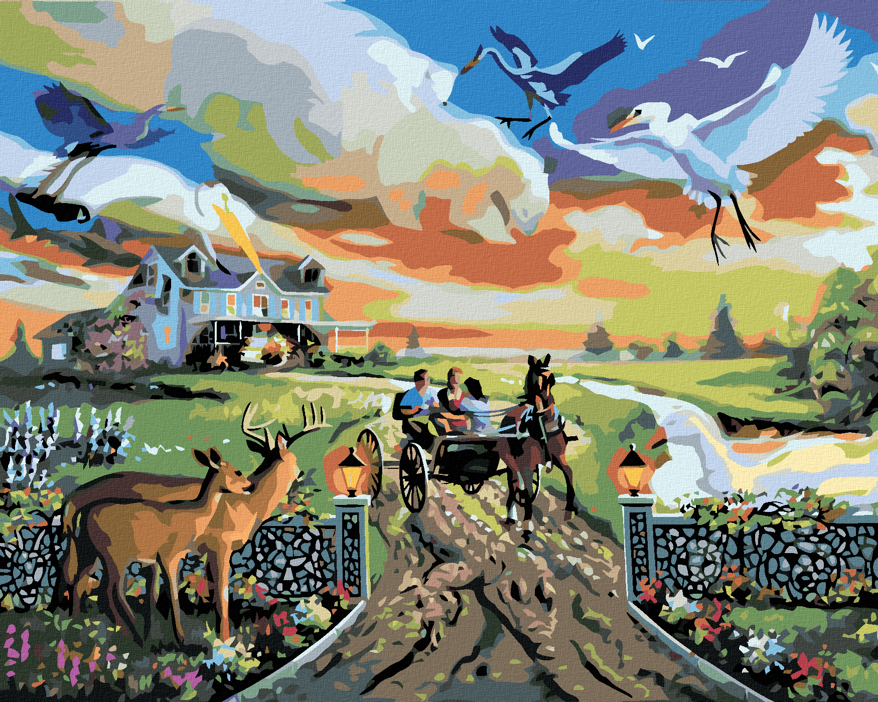 Рисуване по номера - ИЛЮЗИЯ ЗА ЖИВОТНИ И КАРЕТА, НАПУСКАЩА КЪЩАТА (Д. РЪСТИ РЪСТ)
