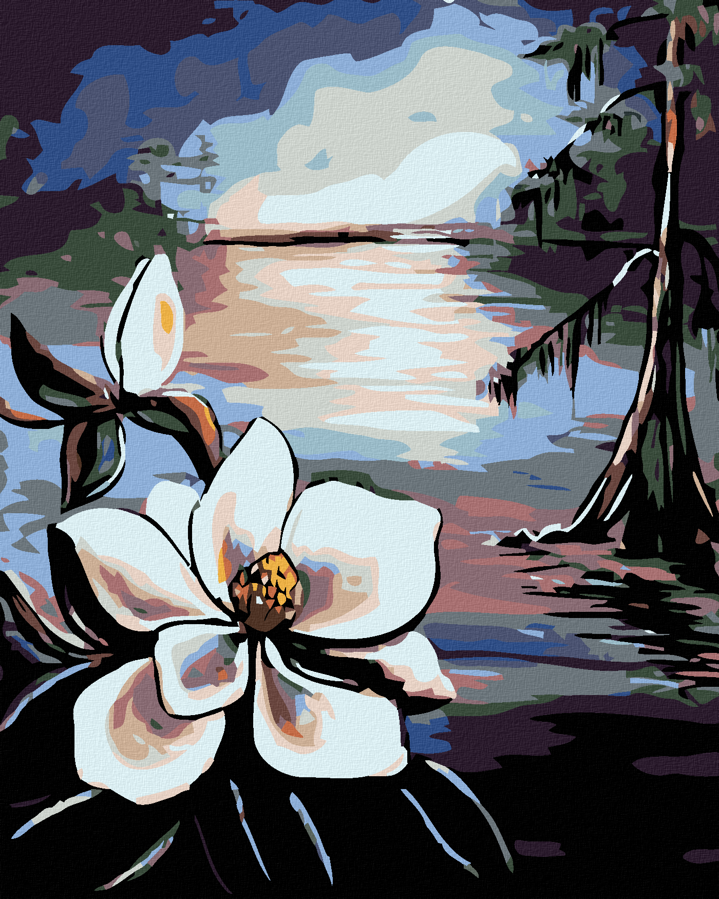 Рисуване по номера - КРАСИВО ЦВЕТЕ И СТАРО ДЪРВО КРАЙ ЕЗЕРОТО