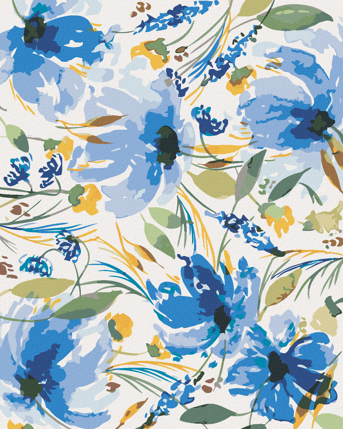Рисуване по номера - СИНИ ЦВЕТЯ МЕЖДУ ЛИСТА (АЛЕКСАНДРИЯ ГИЛБЪРТ)
