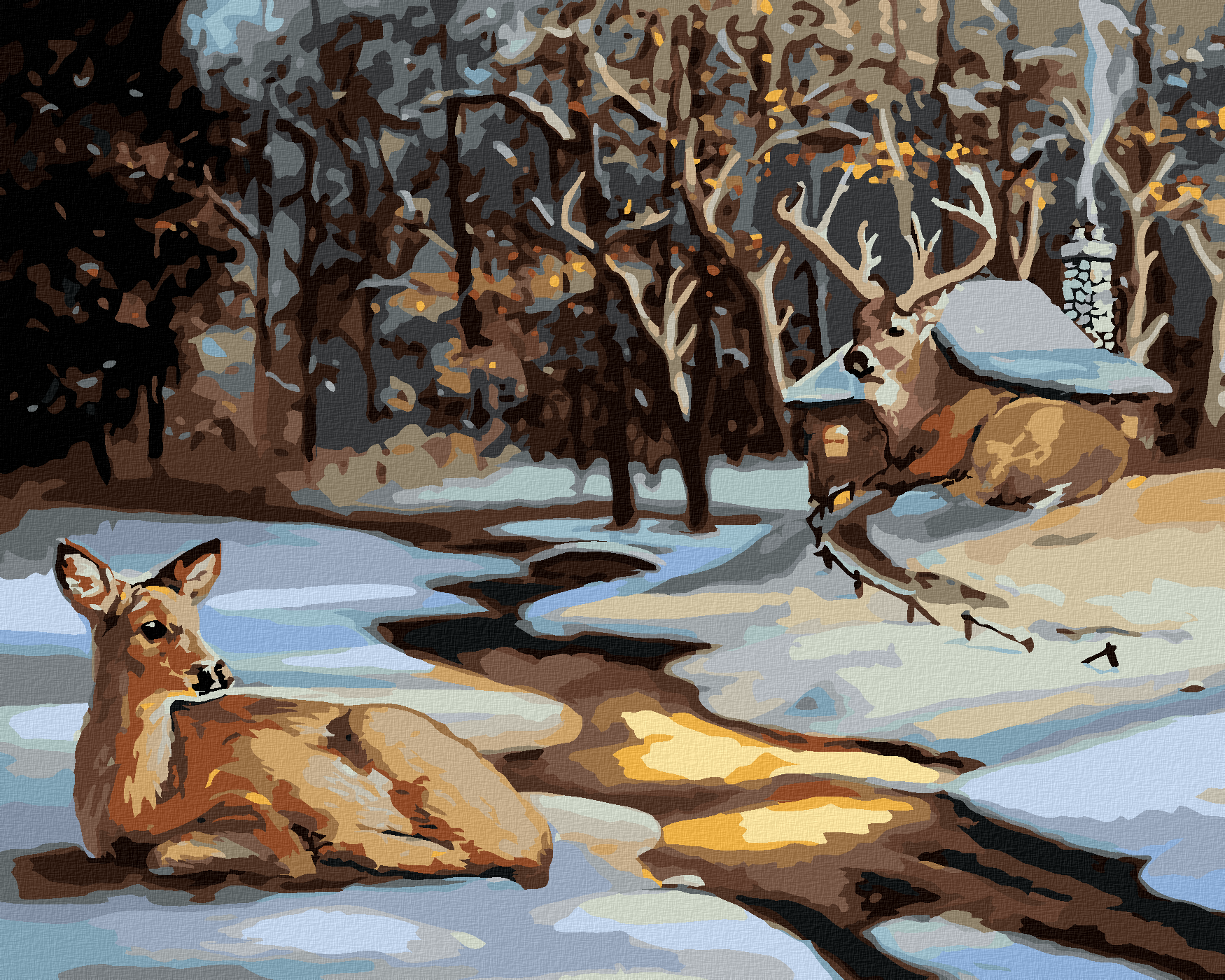 Рисуване по номера - СЪРНА И ЕЛЕН ДО СНЕЖНА КЪЩА (Д. РЪСТИ РЪСТ)