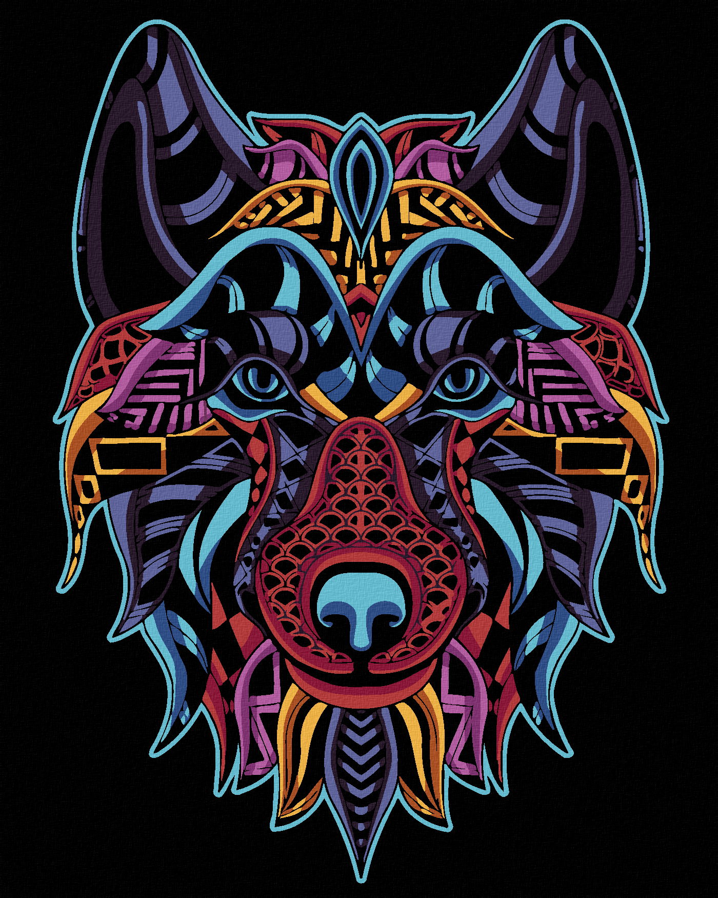 Рисуване по номера - ЦВЕТЕН ВЪЛК НА ЧЕРЕН ФОН