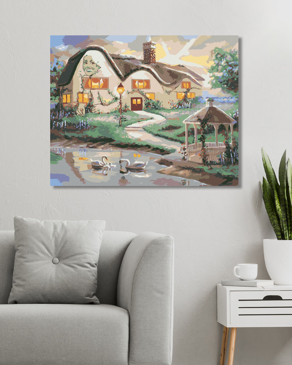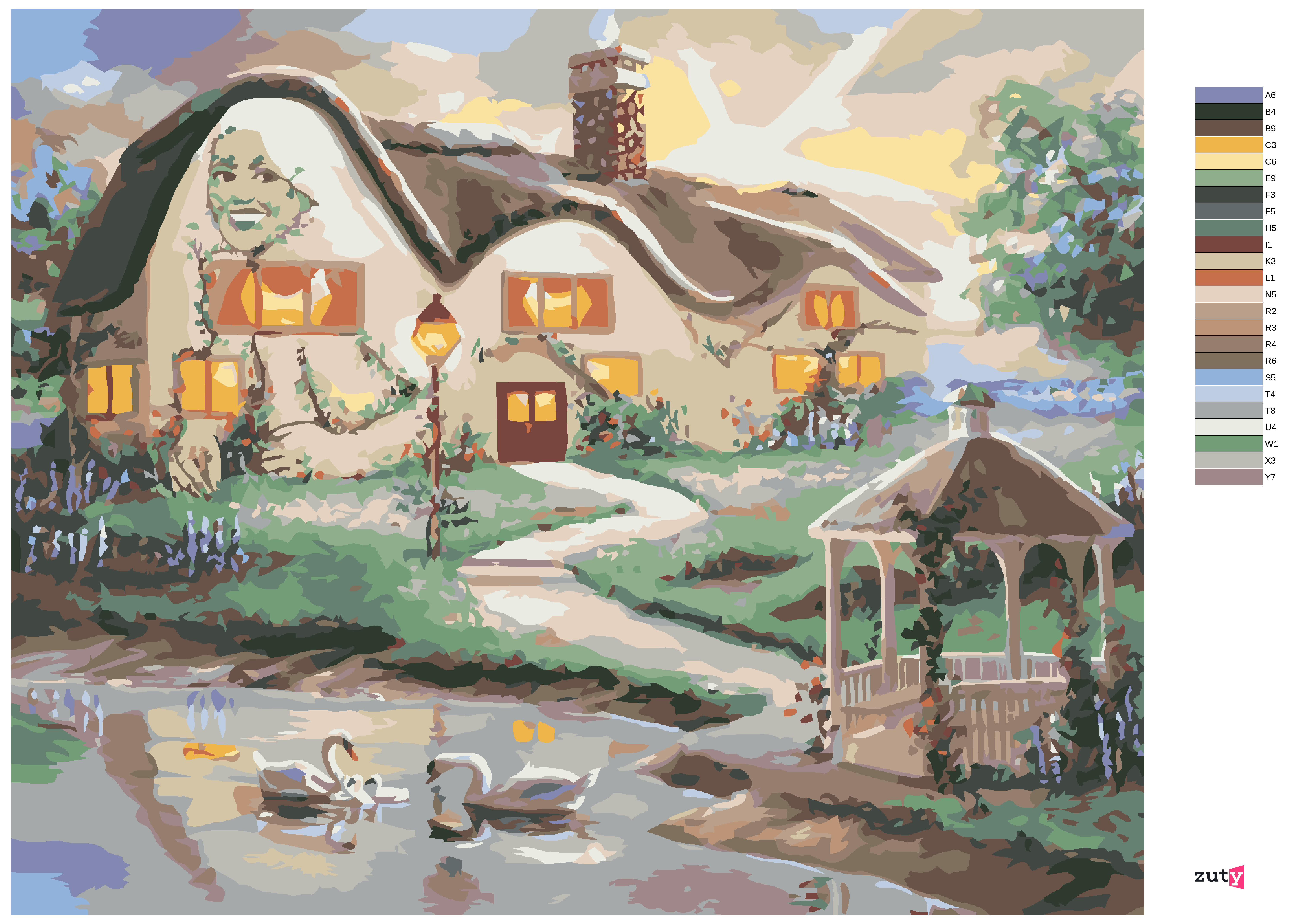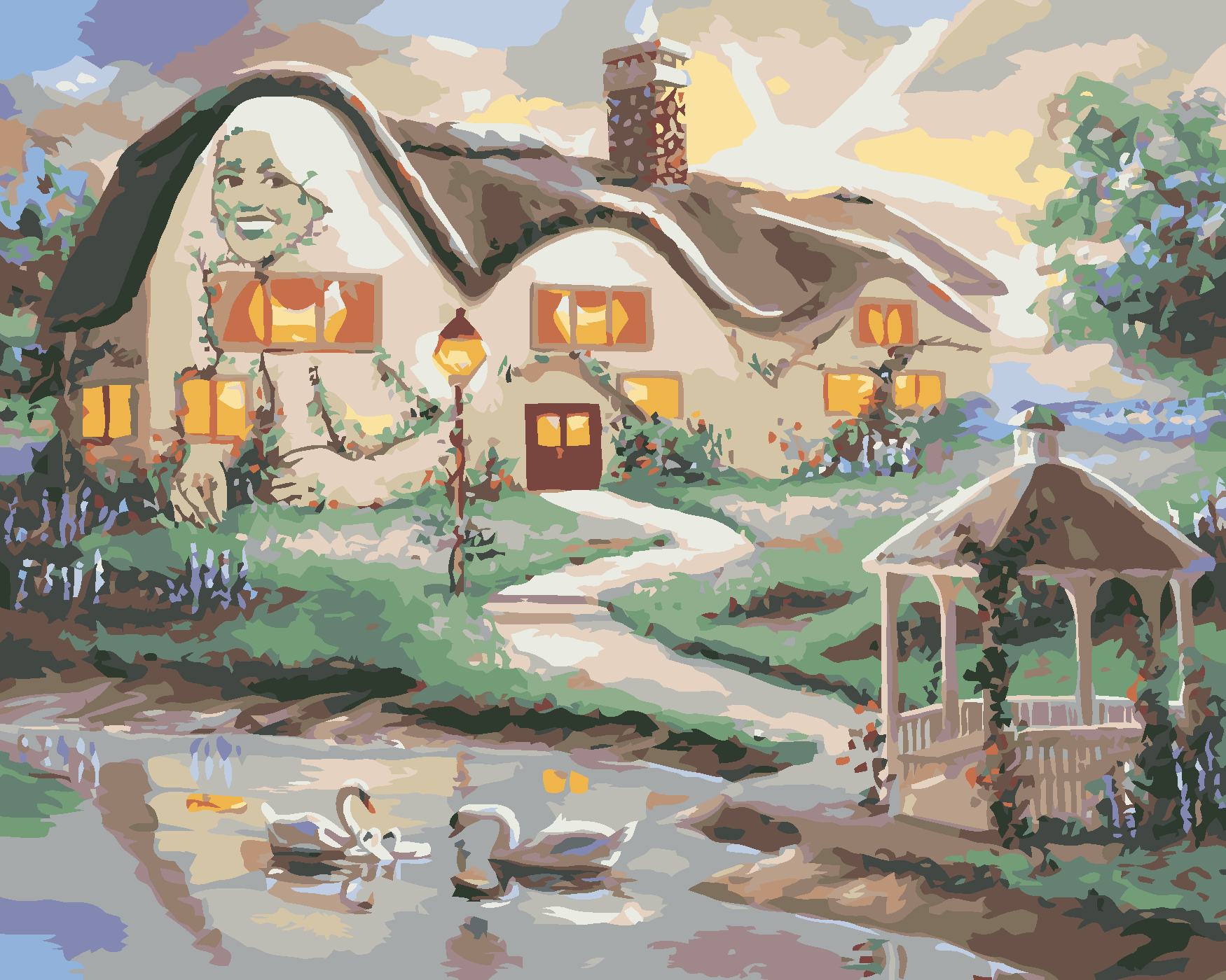 Рисуване по номера - ЛЕБЕДИ НА ЕЗЕРО И КЪЩА С БЕСЕДКА (Д. РЪСТИ РЪСТ)